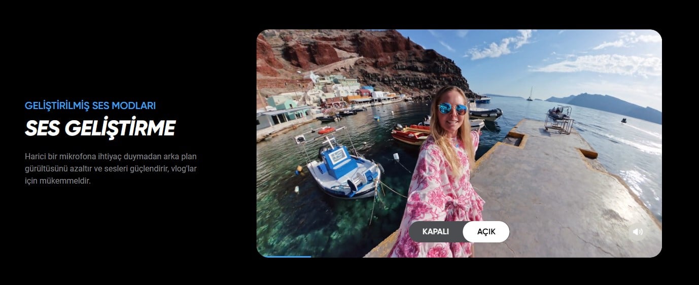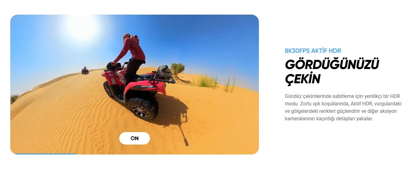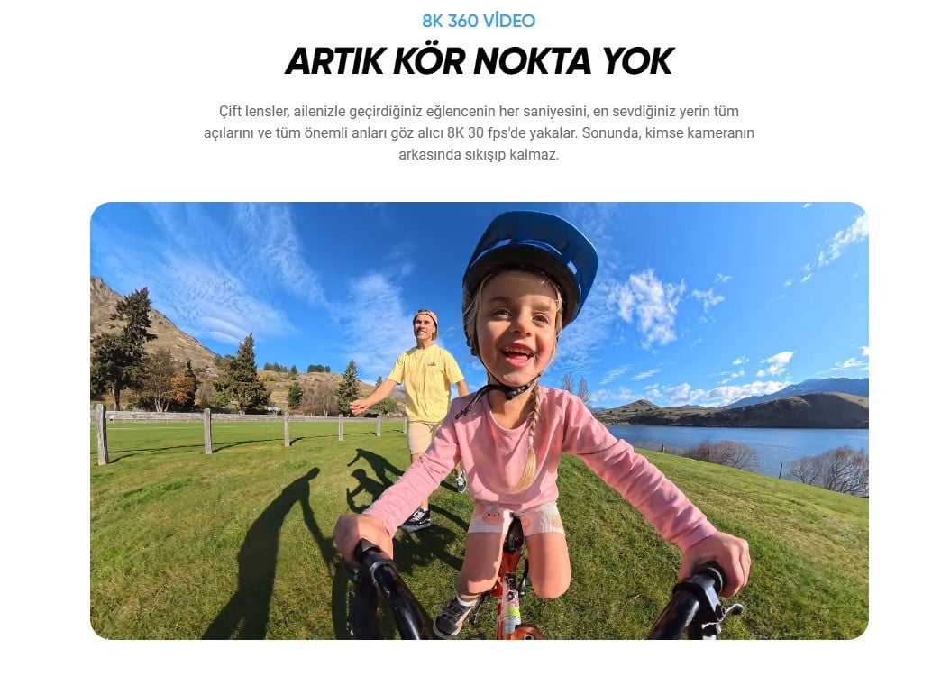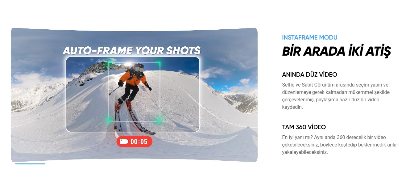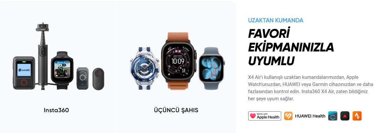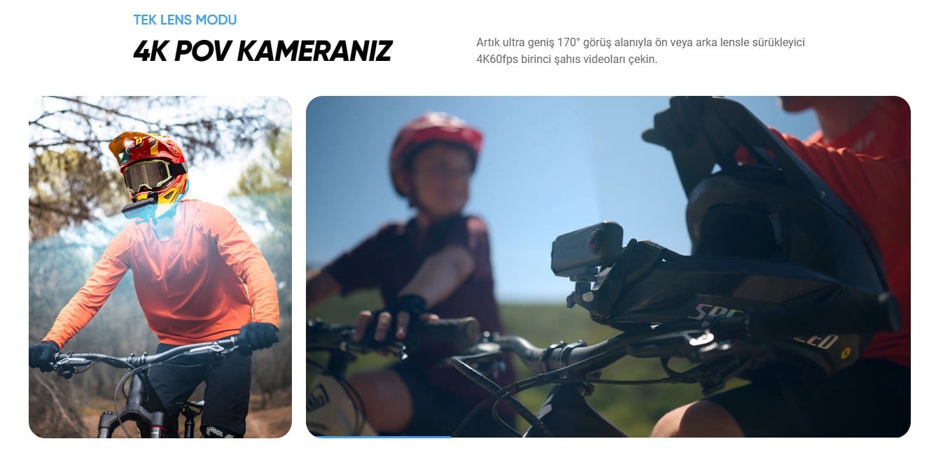 Açıklama: Ultra kompakt Insta360 X4 Air 360° Aksiyon Kamerası Standart Paketi ile sinematik 360° videolar çekin . Çift veya tek lensli modlarda 8K30 360° video çekimi yapabilen bu taşınabilir aksiyon kamerası, X4 kameradan daha küçük ve daha hafiftir. X4 Air, sağlam bir tasarıma sahiptir ve 49' derinliğe kadar suya dayanıklıdır.